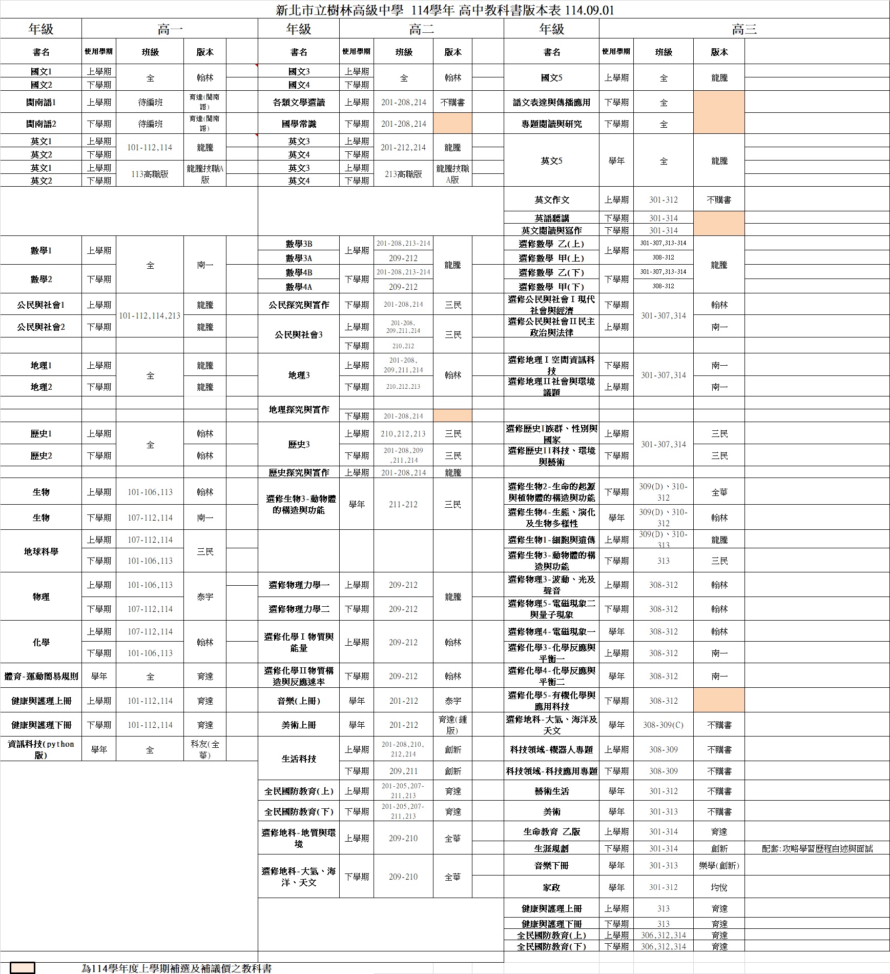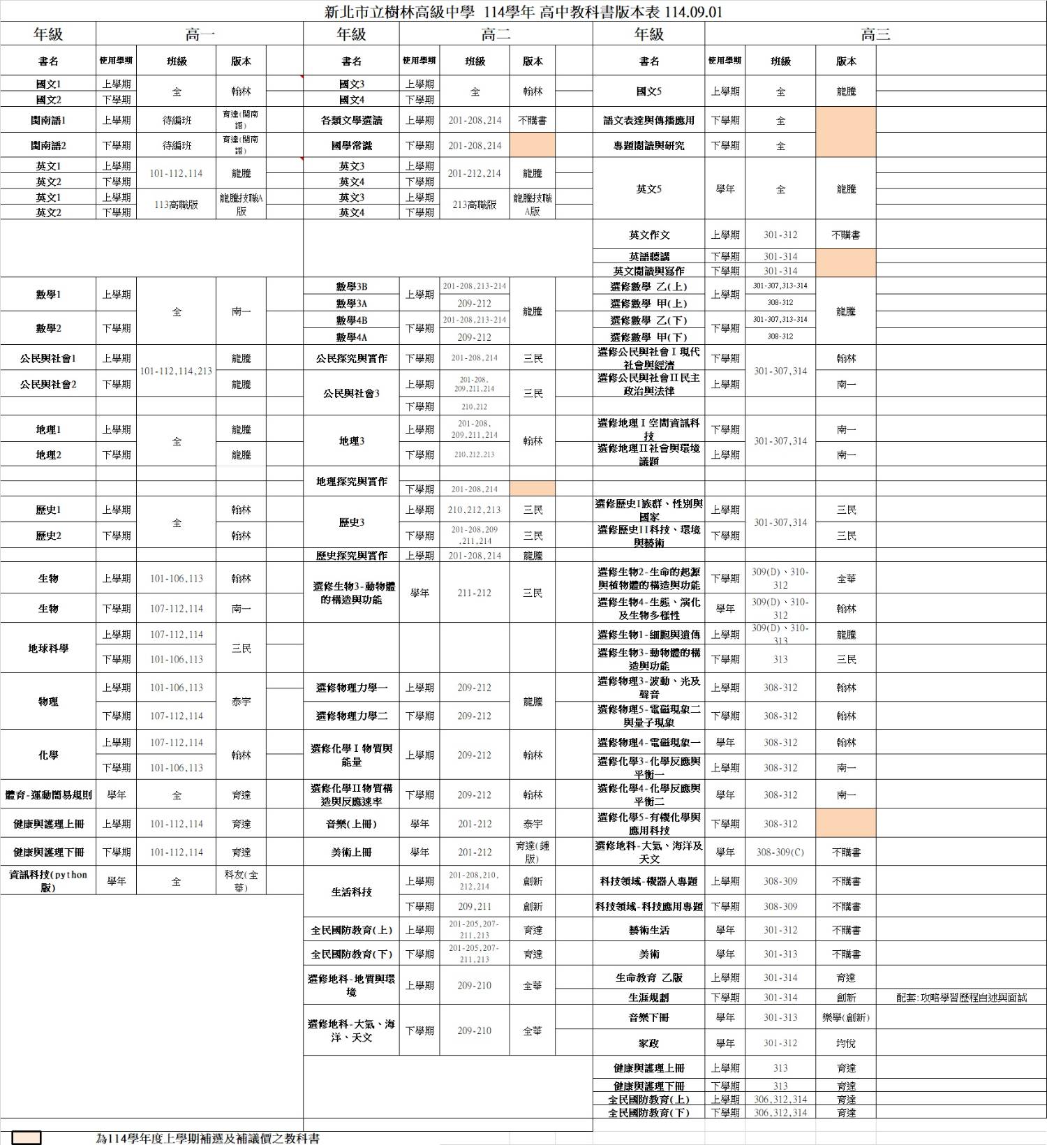 【設備組】114學年度國高中部教科書版本公告